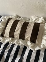 These pillowcases are made from jersey and cotton patchwork stripes with a cotton poplin frill.